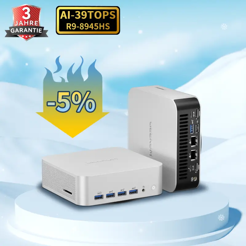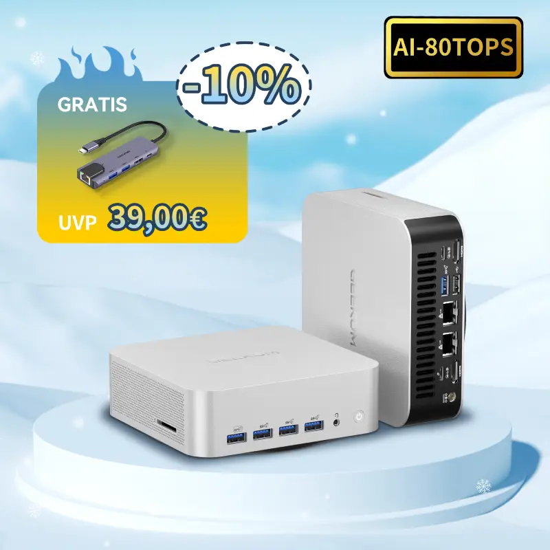 Der Geekom A8 Max – Dein perfekter Begleiter für Power auf kleinstem Raum! Egal ob anspruchsvolle Projekte, kreatives Arbeiten oder Gaming – dieser kompakte Kraftprotz überzeugt mit herausragender Performance und futuristischer Technologie.