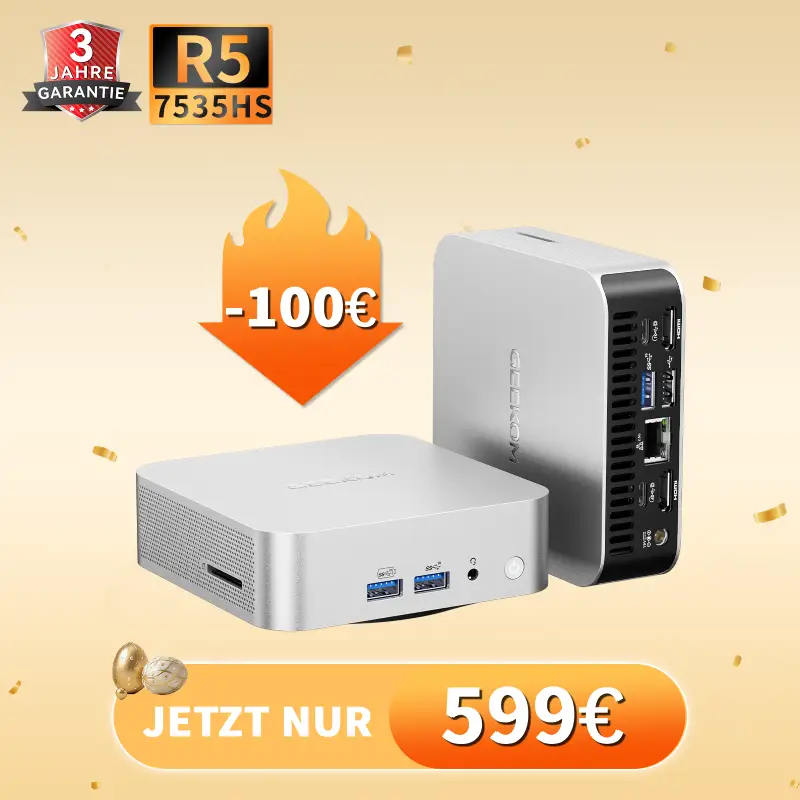 Der Geekom A8 Max – Dein perfekter Begleiter für Power auf kleinstem Raum! Egal ob anspruchsvolle Projekte, kreatives Arbeiten oder Gaming – dieser kompakte Kraftprotz überzeugt mit herausragender Performance und futuristischer Technologie.