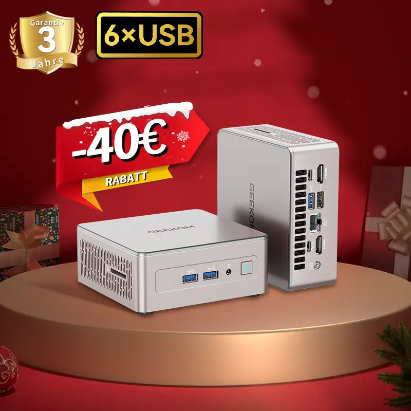 GEEKOM Mini-PCs ersetzen die typischen USB-A-Anschlüsse durch futuristische USB-C-Anschlüsse. Sie bieten mit USB-C bessere Möglichkeiten zum Lesen und Schreiben von Daten, was zu einer hohen Leistung führt.