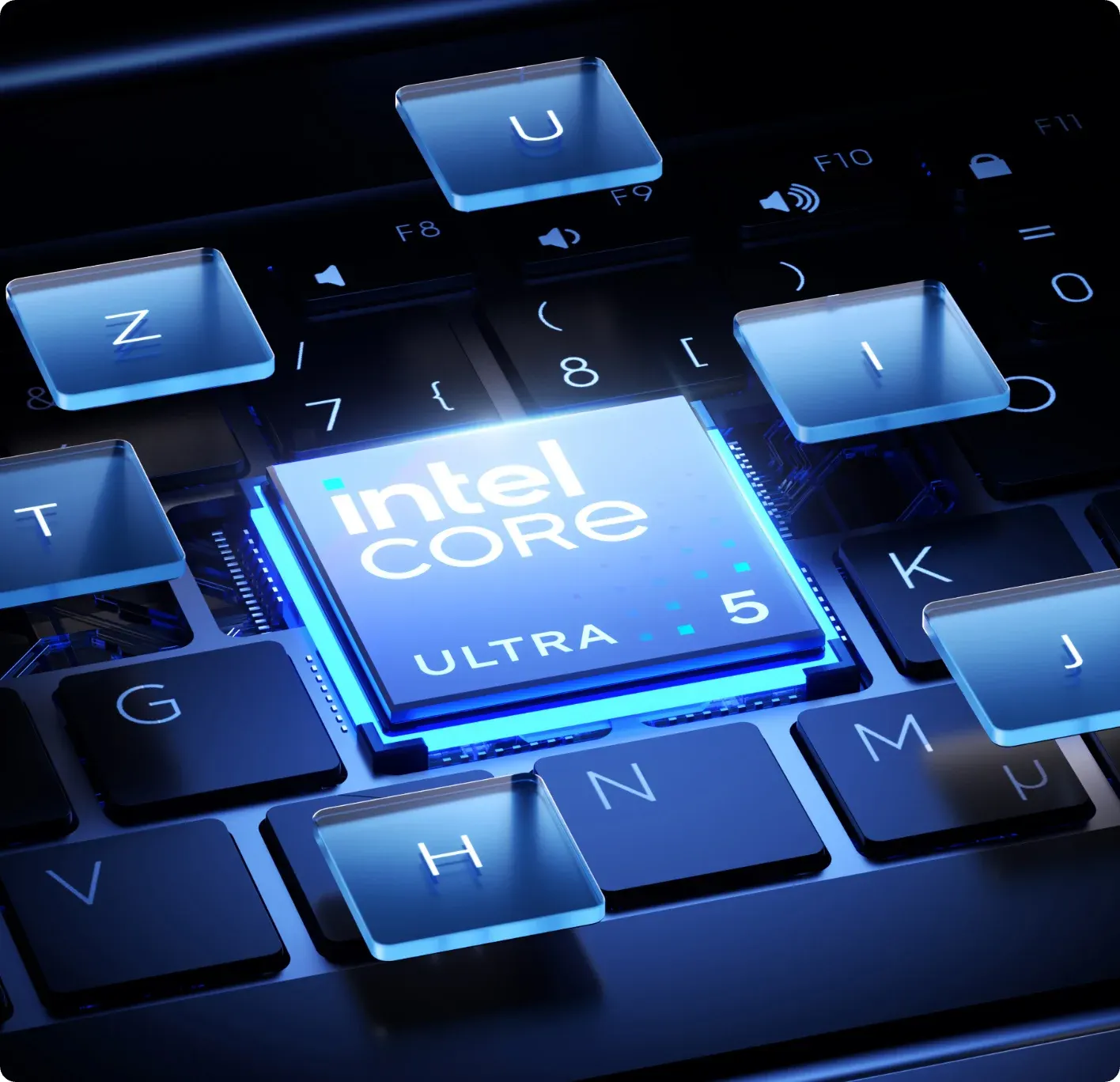 - Maximale Intel Power – Intel® Core™ U9-185H | U5-125H mit Arc-Grafik und integrierter NPU für leistungsstarke KI- und Kreativ-Workflows.