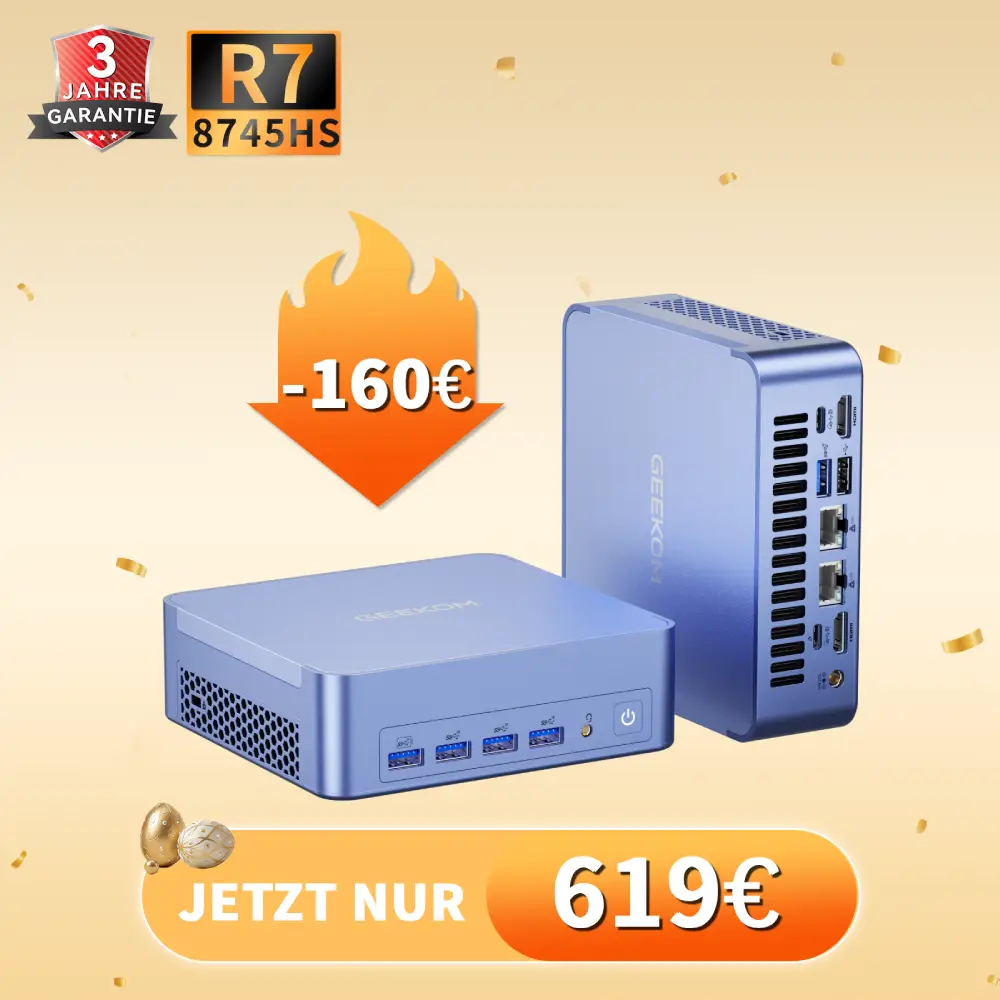 Aber was ist mit der Leistung? Eine häufige Sorge bei Mini-PCs ist, ob sie anspruchsvolle Aufgaben bewältigen können. GEEKOM nimmt diese Bedenken ernst. Unsere neuesten Modelle sind mit leistungsstarken AMD Ryzen– und Intel Core-Prozessoren ausgestattet, die – auch dank der Innovationen von Wissenschaftlern im Bereich nachhaltiger Technologien – einen reibungslosen Betrieb für Arbeit, Unterhaltung und sogar AAA-Spiele gewährleisten.