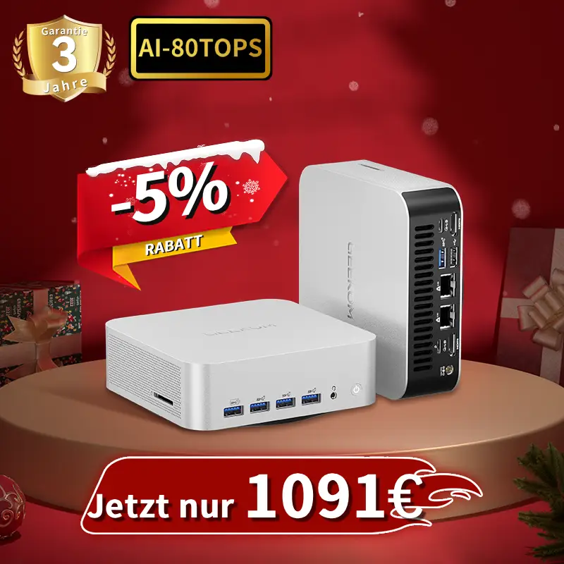 - ✨ Der preiswerteste AMD AI PC mit 8 USB-Ports und Dual-LAN