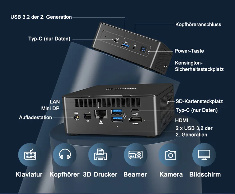 Für 90 % der Benutzer wird der Mini IT8 aufgrund seiner praktischen Konfiguration, der hochwertigen Komponenten und des günstigen Preises die beste Wahl darstellen. Er findet häufige Verwendung bei Geschäftstreffen, in der medizinischen Versorgung und industrieller Steuerung, bei der täglichen Büroarbeit, in der Freizeitgestaltung zuhause und als perfektes Geschenk. Egal, ob Sie Student, Lehrer oder in einer anderen Branche tätig sind, Ehemann, Ehefrau, Elternteil, Freund oder Freundin, Teenager oder Single sind, dies ist der perfekte Mini-Computer für Sie.