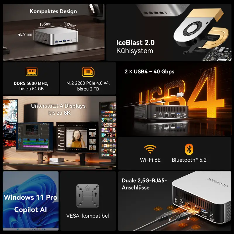 - 🏆 Gewinner des European Hardware Award – Bester Mini-PC der Mittelklasse