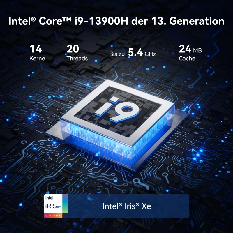 - 8K Iris Xe Grafik & Unterstützung für bis zu 4 Displays – 2 × USB4 (stärker als OCuLink) & 2 × HDMI2.0, ideal für Multitasking, Gaming und gestochen scharfe, lebendige visuelle Darstellungen