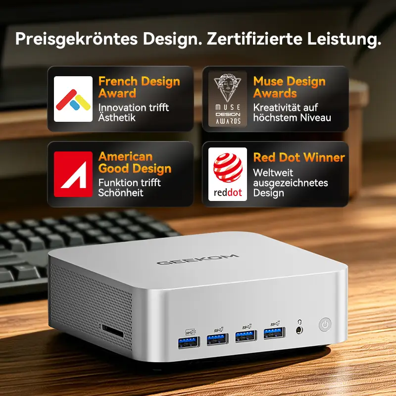 Ob Homeoffice, Multimedia, Gaming oder kreatives Arbeiten: GEEKOM Mini PCs vereinen aktuelle Intel- und AMD-Prozessoren, DDR5-RAM und PCIe-4.0-SSDs auf kleinstem Raum – leise, energieeffizient und vollwertig wie ein klassischer Desktop.