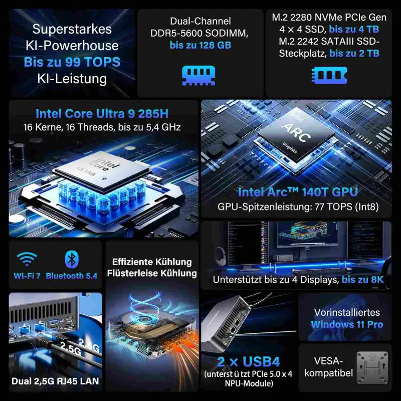 - ✨ Der preiswerteste AMD AI PC mit 8 USB-Ports und Dual-LAN